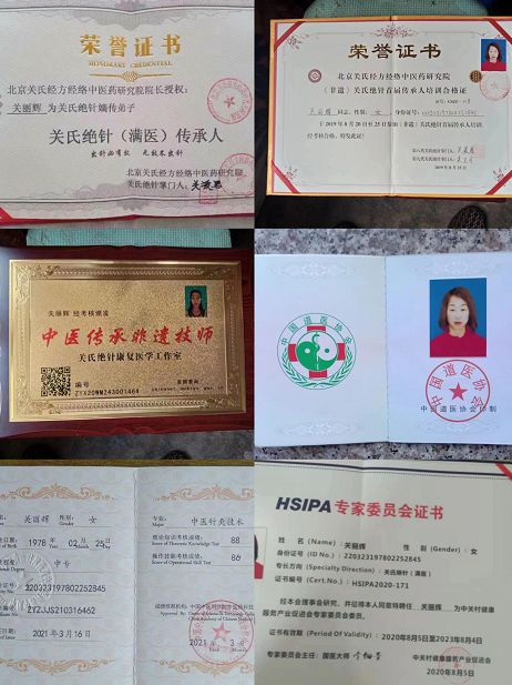 关丽辉(字:清欣),满族,中共党员。1978年出生,瓜尔佳氏,正白旗。毕业于山东省威海市医药卫生学校。中医内科医师北京关氏经方经络中医药研究执行院长兼秘书长。关氏绝针嫡传弟子(满医)第十代传承人。关氏绝针(非遗)首届传承人。马氏易医九代传承人--寒光之第七位关门弟子。中国道医协会长春分会副秘书长。中关村健康服务产业促进会专家委员会委员。
